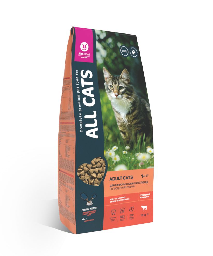 ALL СATS – это полноценный премиальный корм для кошек всех пород. Мы все любим баловать наших кошек, так почему бы не обеспечить им разнообразный рацион совсем как у нас самих? Именно поэтому мы разработали нашу концепцию комбинированного питания.