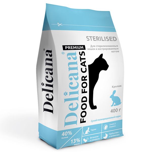 DELICANA Сух.д/кошек КастСтер Кролик 400г / 1*20 3228