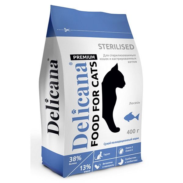 DELICANA Сух.д/кошек КастСтер Лосось 400г 1/20 3211