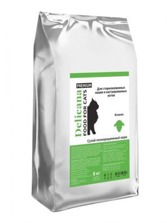 Delicana Сухой полнорационный корм для стерилизованных кошек и кастрированных котов с ягненком.