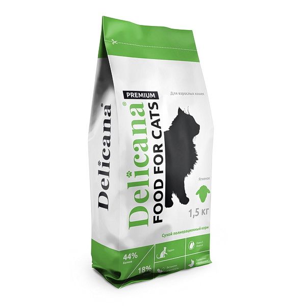 DELICANA Сух.д/кошек Ягненок 1,5кг 1/6 3488