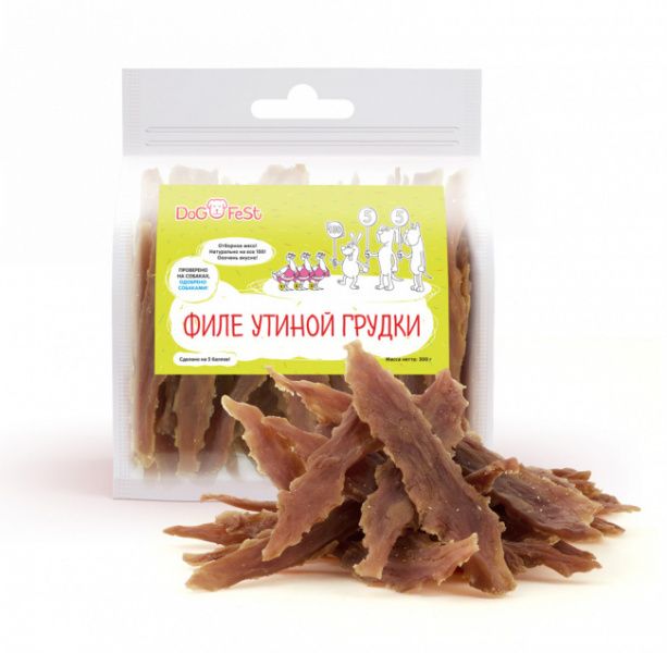 Мясное лакомство для собак Dog Fest "Филе утиной грудки" создано для того, чтобы дарить праздник нашим четвероногим друзьям. Отборное мясо и 100% натуральный состав дополняются прекрасными вкусовыми качествами. "Dog Fest" - самый вкусный подарок вашему любимцу.