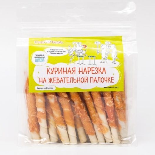 DOG FEST Куриная нарезка на жевательной палочке, 500 гр.