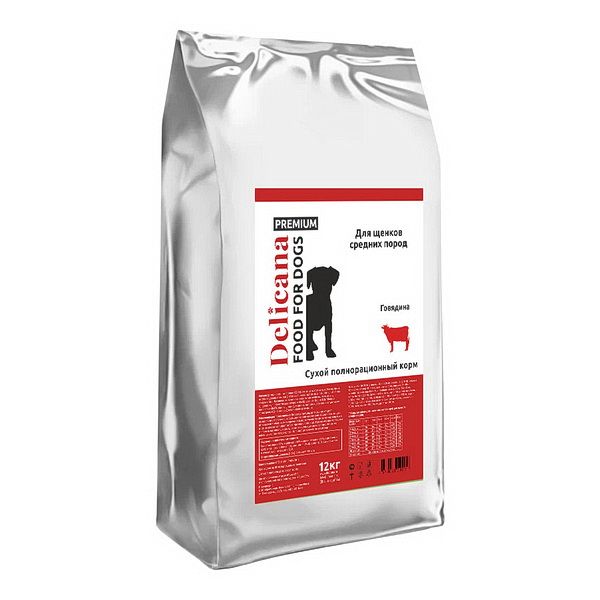 Delicana сух.д/ЩЕНКОВ средних пород говядина 12 кг 2917