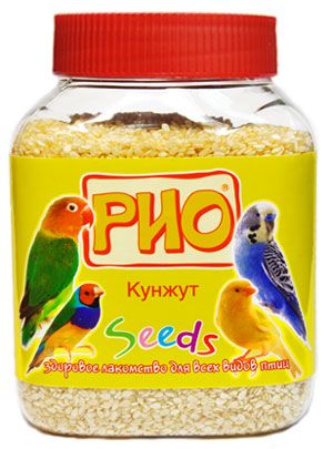 Кунжут - одно из лучших масличных растений, культивируемое от западных берегов Африки вплоть до Китая и Японии, а также в Америке. Семена кунжута являются лидером по содержинию кальция. Кроме того, кунжтное семя богато витаминами В1 и Е, минералами и полиненасыщенными жирными линолевыми кислотами. Кунжут незаменим для дополнительного поддержания сил организма в период стресса, линьки у птиц. Норма кунжута для волнистого попугайчика - 1/6 чайной ложки в день, для попугая размером с кореллу - 1/4 чайной ложки.