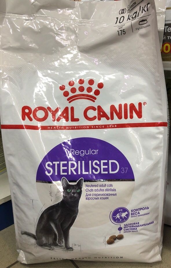 Масса нетто: 0,4 кг, 2 кг, 4 кг, 10 кг. 1) Контроль веса: После стерилизации потребности в калориях у кошки уменьшаются. Корм Sterilised 37 помогает снизить риск избыточного веса благодаря умеренному содержанию жиров и оптимальной суточной дозировке.