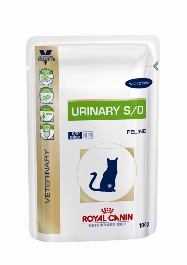 Влажная диета Urinry S/O особенно показана в случаях идиопатического цистита.Диетический корм Urinary S/O Feline, который позволяет предупреждать образование не только струвитных, но и оксалатных камней, рекомендован также при обнаружении мочевых камней неизвестной природы. Диету назначают для долгосрочного применения. Важно помнить, что необходимо постоянно использовать исключительно этот рацион, так как другой продукт может спровоцировать у кошки рецидив уролитиаза.