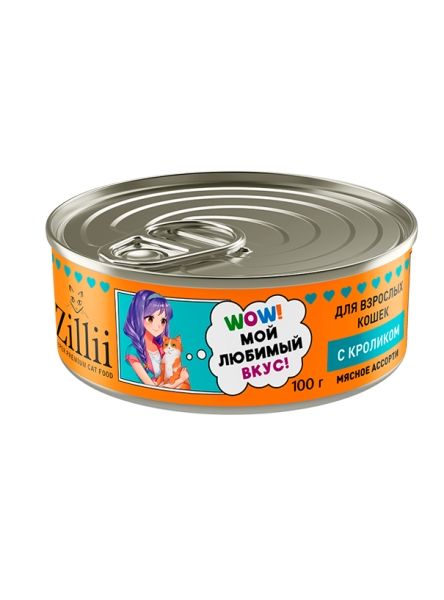 ZILLII Влажные конс. для взрослых кошек 100г с Кроликом 6411