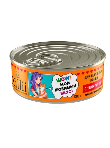 ZILLII Влажные конс. для взрослых кошек 100г с Телятиной 6350