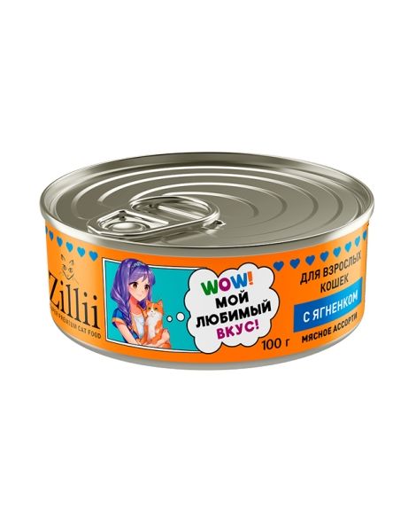 ZILLII Влажные конс. для взрослых кошек 100г с Ягненком 6398