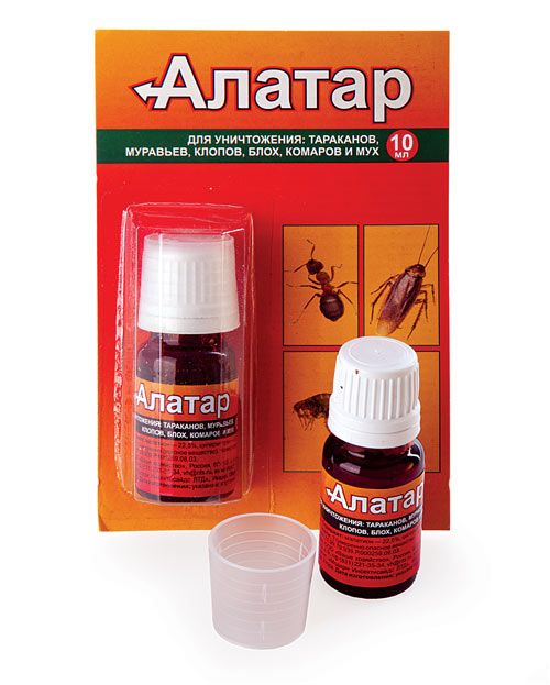 «Алатар». Это универсальный препарат, он эффективен против множества вредителей (плодожорок, белянок, совок, листоверток, тлей, колорадского жука, медяницы, трипсов, белокрылок, долгоносиков, клещей и т.д. ). «Алатар» защитит от вредителей большинство садовых и огородных культур на Вашем участке (капусту, огурцы, томаты, яблоню, смородину, малину, цветы и т.д.) «Алатар» наносит по вредителям двойной удар, так как содержит сразу два действующих вещества: малатион и циперметрин. Он успешно подавляет даже устойчивые популяции вредителей и обладает синергическим эффектом. Входящий в его состав прилипатель препятствует скатыванию раствора с листьев и смыванию дождем, удлиняет период защитного действия. Препарат имеет малую норму расхода — всего 5 мл/10 л воды на 1 сотку. В вашей садовой аптечке «Алатар» должен быть обязательно как первейшее средство неотложной помощи при неожиданном нападении вредителей.