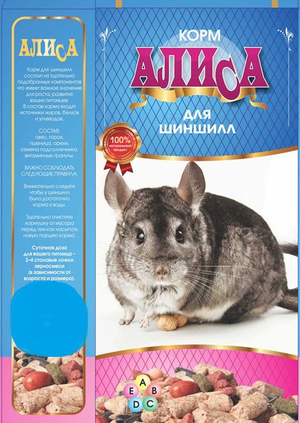 Корм для шиншилл состоит из тщательно подобранных компонентов, что имеет важное значение для роста и развития ваших питомцев. В состав корма входят источники жиров, белков и углеводов, а именно: овес, горох, пшеница, орехи, семена подсолнуха, витаминные гранулы. Важно соблюдать, чтобы у шиншилл всегда было достаточно корма и воды. Тщательно очищайте кормушку, перед тем, как насыпать свежую порцию корма. Суточная доза корма 2-4 столовые ложки зерносмеси, в зависимости от возраста и размера Вашего питомца.