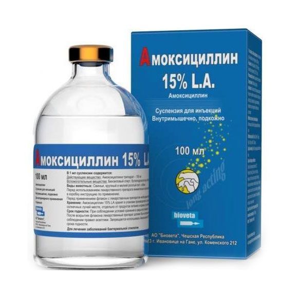 тригидрата на 1 кг массы животного). При необходимости Амоксициллин 15%