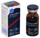 Форма выпуска: Анестофол 5% выпускают расфасованным по 5мл, 10мл, 20мл, 50мл и 100мл во флаконы темного стекла соответствующей вместимости, герметично укупоренные резиновыми пробками, укрепленными алюминиевыми колпачками. Флаконы упаковывают индивидуально или по 6 и 10 штук в пачки из картона вместе с инструкцией по применению.