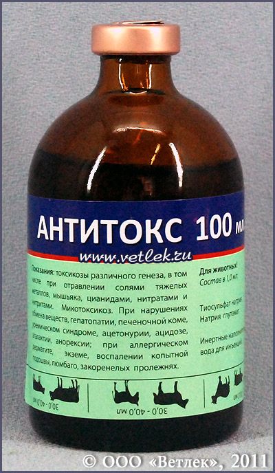 Препарат предназначен для выведения токсичных веществ из организма домашних и сельскохозяйственных животных. Лекарство рекомендуется использовать при отравлении животного, при лечении воспалений, нарушения обмена веществ и вызванных этим заболеваний. Препарат не имеет противопоказаний, не влияет на качество мясомолочных продуктов. Подойдет для лечения мелкого и крупного рогатого скота, свиней, лошадей, кошек, собак и мелких пушных зверей. Антитокс разрешен к применению беременным животным. Обладает противоаллергическим действием