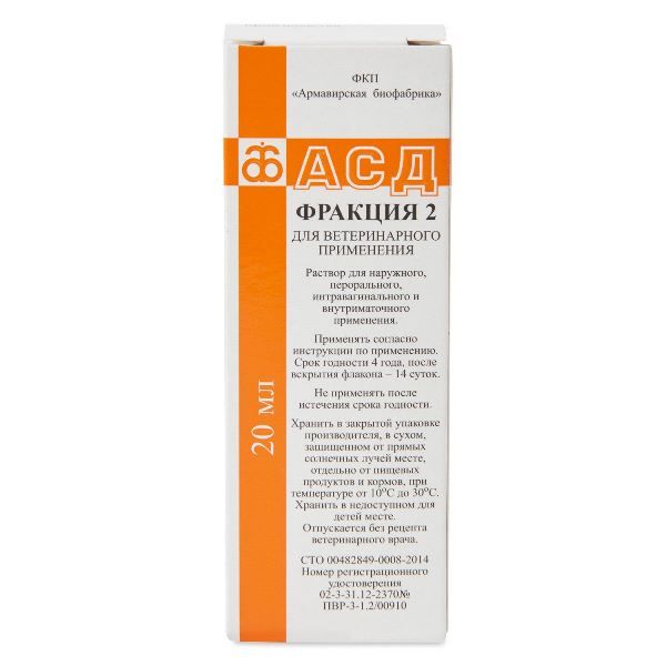 В период применения препарата АСД фракция 2 не отменяется этиотропное лечение животных. Молоко дойных животных и яйцо птицы после применения препарата используется без ограничений. В случае вынужденного убоя животных мясо используется без ограничений.