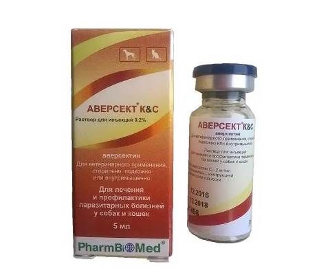Аверсект К&С вводят животным с соблюдением правил асептики и антисептики подкожно или внутримышечно из расчета 0,2 мг действующего вещества (аверсектин С1) на 1 кг массы животного, что соответствует для собак средних и крупных размеров — 0,4 мл 0,5 % раствора Аверсекта К&С на 10 кг массы животного, собак массой менее 10 кг и кошек — 0,1 мл 0,2 % раствора Аверсекта К&С на 1 кг массы животного.