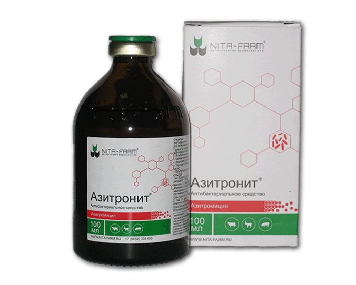 13. Азитронит® вводят крупному рогатому скоту, овцам и свиньям внутримышечно в дозе 1 мл на 20 кг массы животного (5 мг азитромицина на 1 кг массы животного) один раз в сутки в течение 2 дней. При необходимости инъекцию повторить.