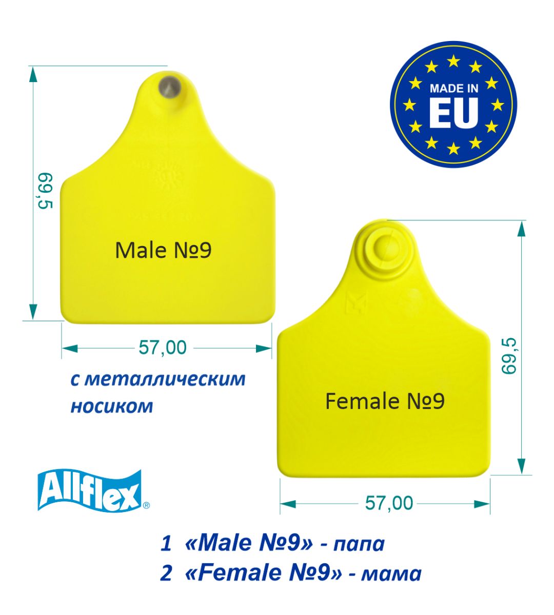 Бирка Male 09 папа. Жёлтая с номером (69,5х57)