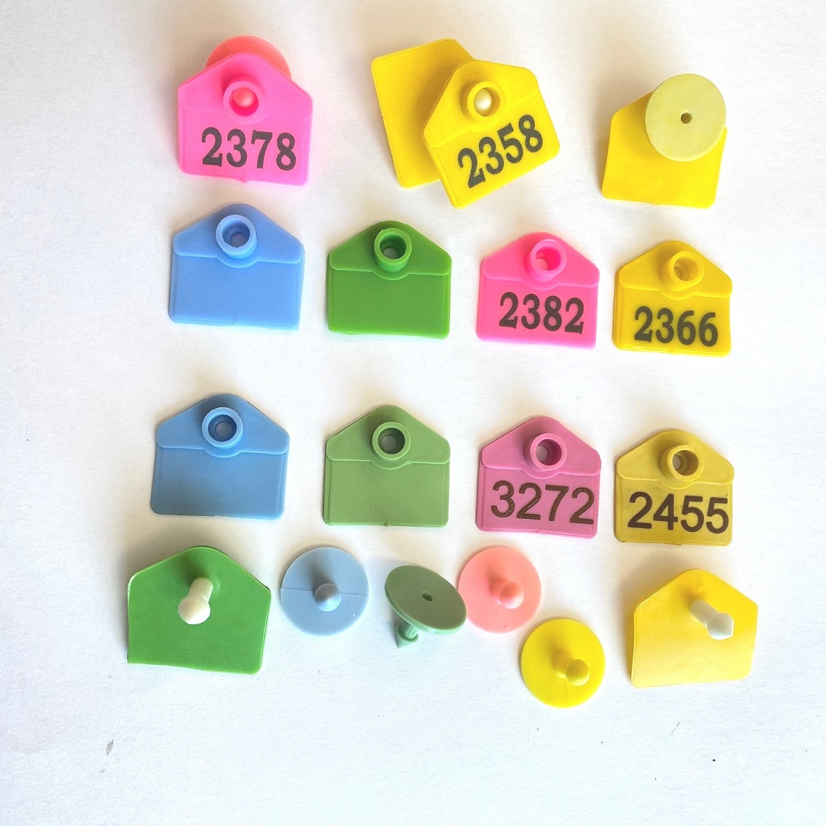 Ответная часть представляет собой круглую клипсу (папа) выполненную из очень прочного гипоаллергенного пластика, который используется для пробивания уха животного.