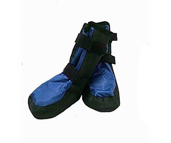 Изготовлены из прочного износостойкого синтетического материала Оксфорд 1680 с водоотталкивающей пропиткой. Имеют подкладку из флиса. Подошва - ЭВА. Ботинок на лапе фиксируется с помощью двух липучек – которые позволяют надежно зафиксировать ботинок на лапе. Предназначены для ношения в холодную грязную погоду и для защиты лап собаки от соли и реагентов.