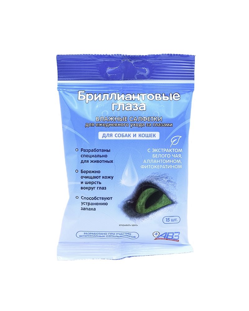 Салфетки разработаны при участии ветеринарных офтальмологов специально для ухода за глазами и очистки шерсти и кожи вокруг глаз животного. Они бережно удаляют выделения из глаз. Избавляют от «слёзных дорожек». Способствуют устранению запаха от выделений из глаз. Подходят для применения котятам и щенкам.
