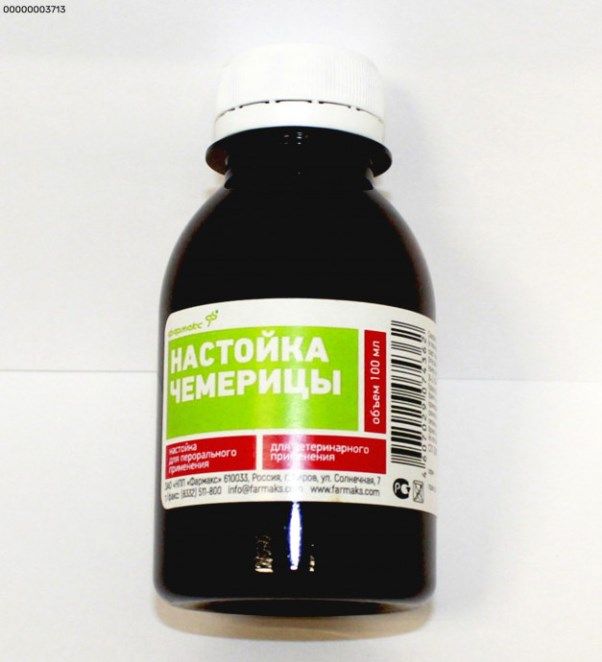 Настойку чемерицы вводят внутрь в следующих дозах: крупному рогатому скоту — 5 – 12 мл на одно животное или 0,01 – 0,024 мл на 1 кг веса животного; овцам и козам — 2 – 4 мл на одно животное или 0,04 – 0,08 мл на 1 кг веса животного; свиньям — 1 – 2 мл на одно животное или 0,014 – 0,028 мл на 1 кг массы животного; собакам — 0,05 – 2 мл на одно животное или 0,05 – 0,2 мл на 1 кг массы животного 1 – 2 раза в день до выздоровления.