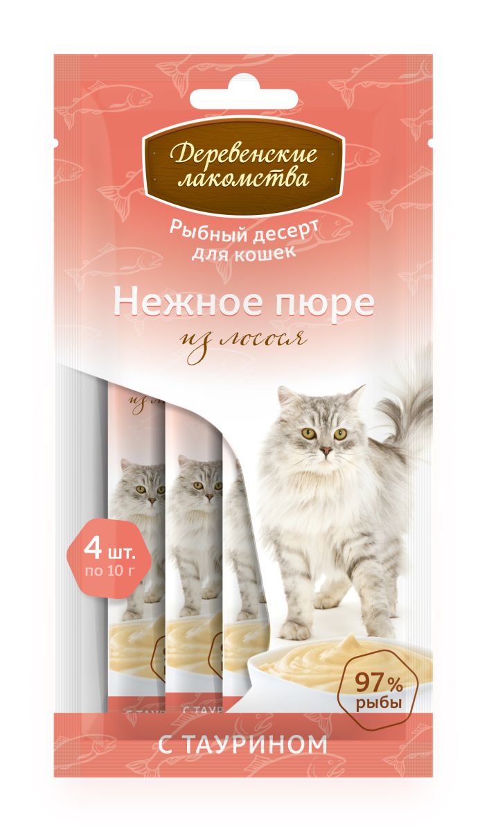 Деревенские лакомства для кошек «Нежное пюре из лосося», 4х10г 0025