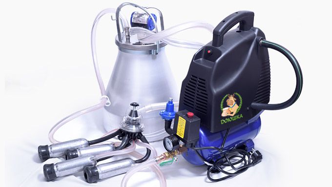 Доильный аппарат сухого типа для доения коров. Оборудован попарным пульсатором, алюминиевым бидоном, доильной аппаратурой с черной сосковой резиной. Предназначен для индивидуального хозяйства с 1 - 2 коровами.