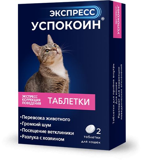 Экспресс Успокоин – единственный на российском рынке успокоительный препарат для быстрого и эффективного решения поведенческих проблем у кошек в стрессовых ситуациях: