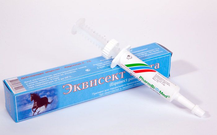 Перед массовой обработкой каждую партию препарата испытывают на небольшой группе (5 – 7 животных) малоценных лошадей. При отсутствии осложнений через 2 – 3 дня Эквисект пасту применяют остальным животным.
