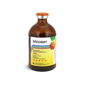Элеовит в 1 мл в качестве действующих веществ содержит: витамин А – 10000 МЕ, витамин Д3 – 2000 МЕ, витамин Е –10 мг, витамин К3 – 1 мг, витамин В1 – 10 мг, витамин В2 – 4 мг, витамин В6 – 3 мг, цианокобаламин –10 мкг, биотин – 10 мкг, никотинамид – 30 мг, пантотеновую кислоту – 20 мг, фолиевую кислоту – 0,2 мг и вспомогательные вещества: гидролизат белка лактоальбумина – 0,2 мг, глюкозу – 50 мг, воду для инъекции – до 1 мл. По внешнему виду препарат представляет собой маслянистую жидкость (допускается опалесценция) от светло-желтого до светло-коричневого цвета со специфическим запахом. Максимально допустимые отклонения содержания витаминов не превышают 15%, по содержанию вспомогательных веществ – 10% от указанных количеств.