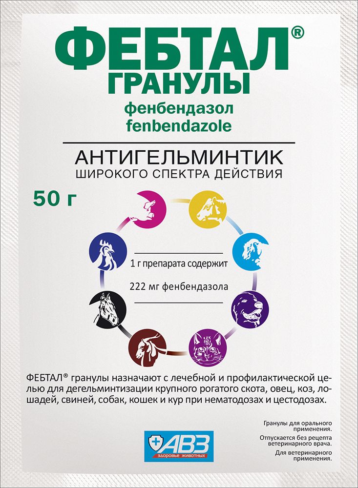 ФЕБТАЛ® гранулы назначают животным с лечебной и профилактической целью для дегельминтизации: