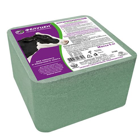 Фелуцен»- лизунец - специальная кормовая добавка для коров, нетелей, быков и телят, которая является естественным антигельминтным и антимикробным средством. Данная рецептура лизунца является альтернативой фармацевтическим антигельминтным препаратам.