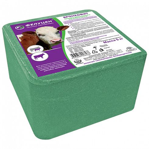 Фелуцен минеральный лизунец для крупного рогатого скота Бронхофит предназначен для стимуляции пищеварения и восполнения дефицита соли в организме животных. Удобная форма введения компонентов в организм животного для профилактики бронхо-легочных заболеваний и способствует: