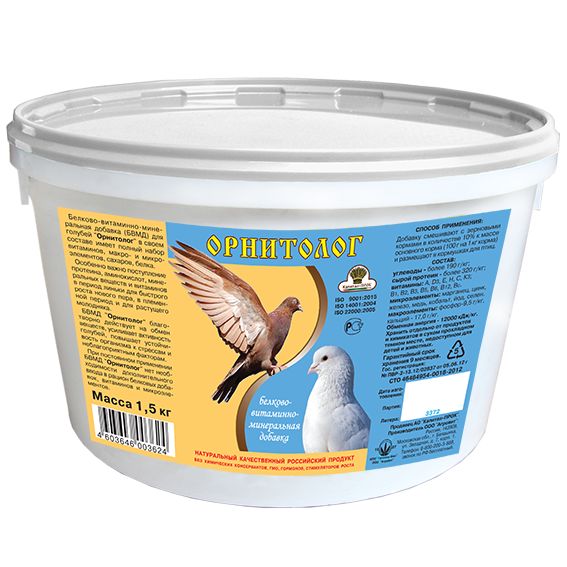 Норма ввода: добавку следует вводить в рацион, состоящий из зерновой части: 90 % + 10 % БВМД «Орнитолог».