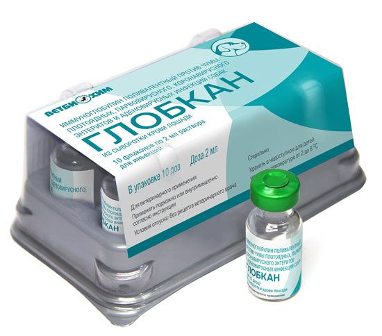 Препарат Глобкан-5 содержит высокоочищенную фракцию глобулинов, выделенную из гипериммунной сыворотки крови крупного рогатого скота (мелкого рогатого скота или лошадей), активную против чумы плотоядных, парвовирусного и коронавирусного энтеритов и аденовирусных инфекций собак.