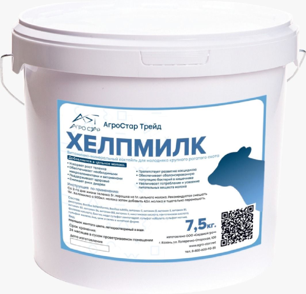 1.4. Хелпмилк выпускают расфасованным по 7,5 кг в пластиковые ведра с дозировочной