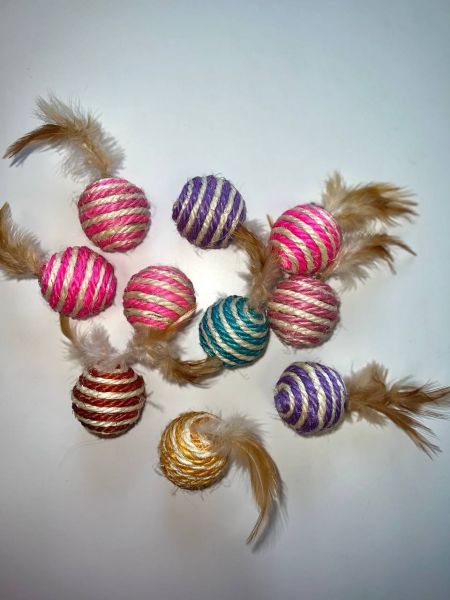 Игрушка д/кошек Джутовый шарик с пером sh-05049