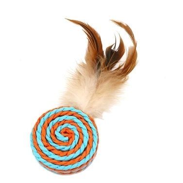 Игрушка д/кошек Шайба сизаль перо, 6 см