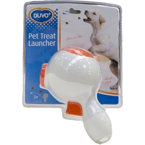Развлекательная игрушка-пистолет для лакомств. Легко заполняется сухим лакомством, рекомендованный размер диаметра вкусняшек до 1см., дальность выстрела до 3-х метров. Материал: Пластик