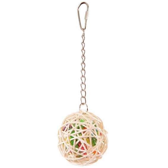 Игрушка для птиц SkyRus «Ротанговый шар на цепочке», 7х7х21см