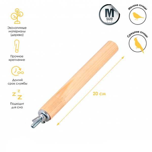 Игрушка для птиц «Жердочка прямая» PetStandArt, Размер M: 20x2x2см. Дерево