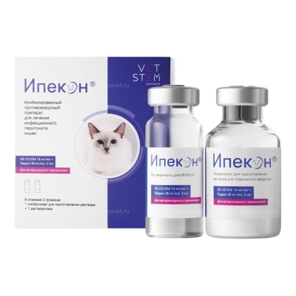 Препарат Ипекон назначают кошкам для лечения вирусного инфекционного перитонита кошек (ИПКFIP).