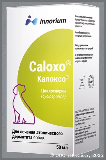 Лекарственный препарат применяют животным перорально индивидуально, 1-2 раза в сутки за 2 часа до или после кормления в суточной дозе 5 мг циклоспорина на 1 кг массы животного, что соответствует 1 мл Калоксо на 20 кг массы животного.
