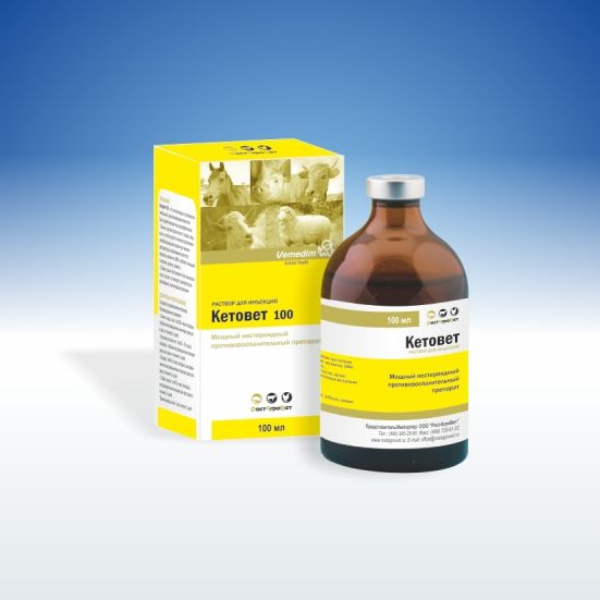 “Кетовет 100” назначают свиньям, крупному рогатому скоту, ло-шадям, овцам и козам для лечения воспалительных процессов при острых и хронических заболеваниях опорно-двигательного аппарата, болевого синдрома различной этиологии (травматическая и послеоперационная боль, колики, грыжи межпозвоночных дисков), а также в качестве жаропонижающего средства при болезнях, сопровождающихся повышением температуры.