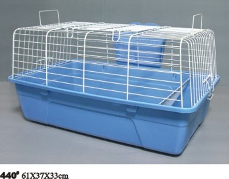 Клетка для кроликов и морских свинок с высоким поддоном и верхним входом, с пластиковым поддоном и снимаемой проволочной клеткой. Такая клетка удобна тем, что к ее прутьям можно прикреплять различные полезные атрибуты для питомца, такие, как поилка, солевой камень и т.д. В комплект входят: кормушка для сена. Дополнительные ручки по бокам.