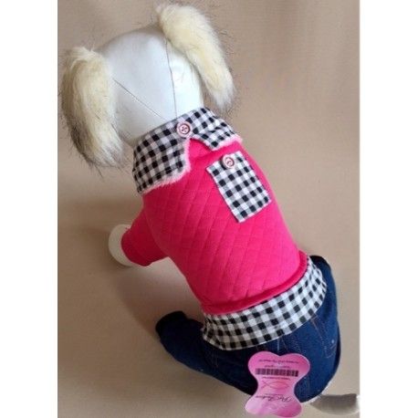 Комбинезон S Клетка джинс розовый --
