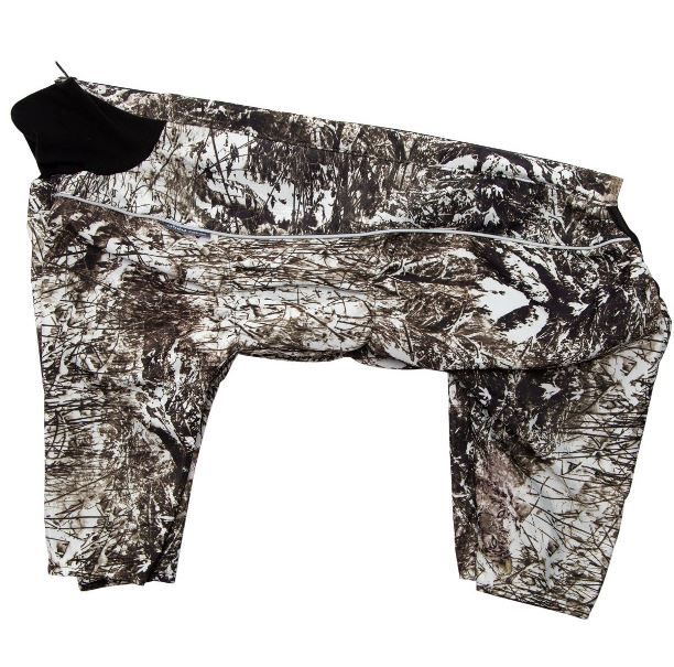 Внешняя сторона комбинезона защищает от ветра и дождя, а внутренняя - регулирует отвод тепла, за счет чего комбинезон не позволяет перегреваться и переохлаждаться собаке. Внутренняя сторона комбинезона выполнена из сцепления мембранной пленки, которая является водонепроницаемой, с флисом. Сцепление получается прочным и одновременно гибким, что делает комбинезон комфортным и теплым.