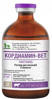 КОРДИАМИН-ВЕТ - Активизирует дыхательную и сердечно-сосудистую деятельность